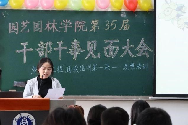 团委学生会各部门负责人从部门职责、部门成员、部门规划三个角度为干事们介绍本部门的相关职责,帮助干事充分了解各部门工作,顺利融入团委学生会这个大家庭之中。组织部负责人吴文睿详细讲解团委学生会的绩效考核制度,帮助干部干事快速明确工作要求,为团学工作的顺利开展打下坚实基础。