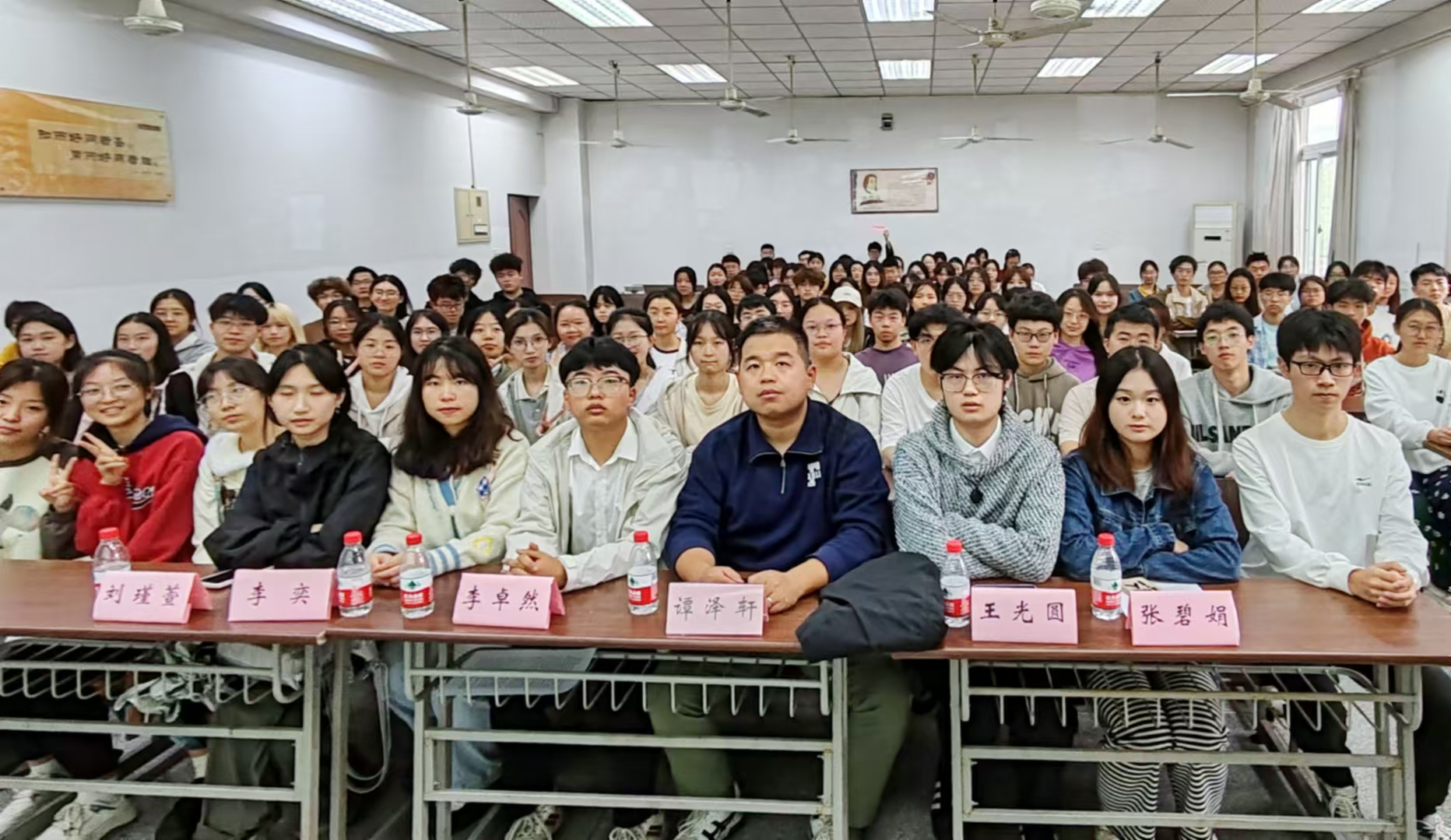 团委书记谭泽轩老师致辞,对新成员们的到来表示热烈欢迎。他强调青年学生是未来国家发展的中坚力量,应将个人理想与国家发展紧密相连,在学习和实践中不断成长,以高标准要求自己,不断提高政治站位,增强社会责任感,配得上老师和同学们的信赖。
