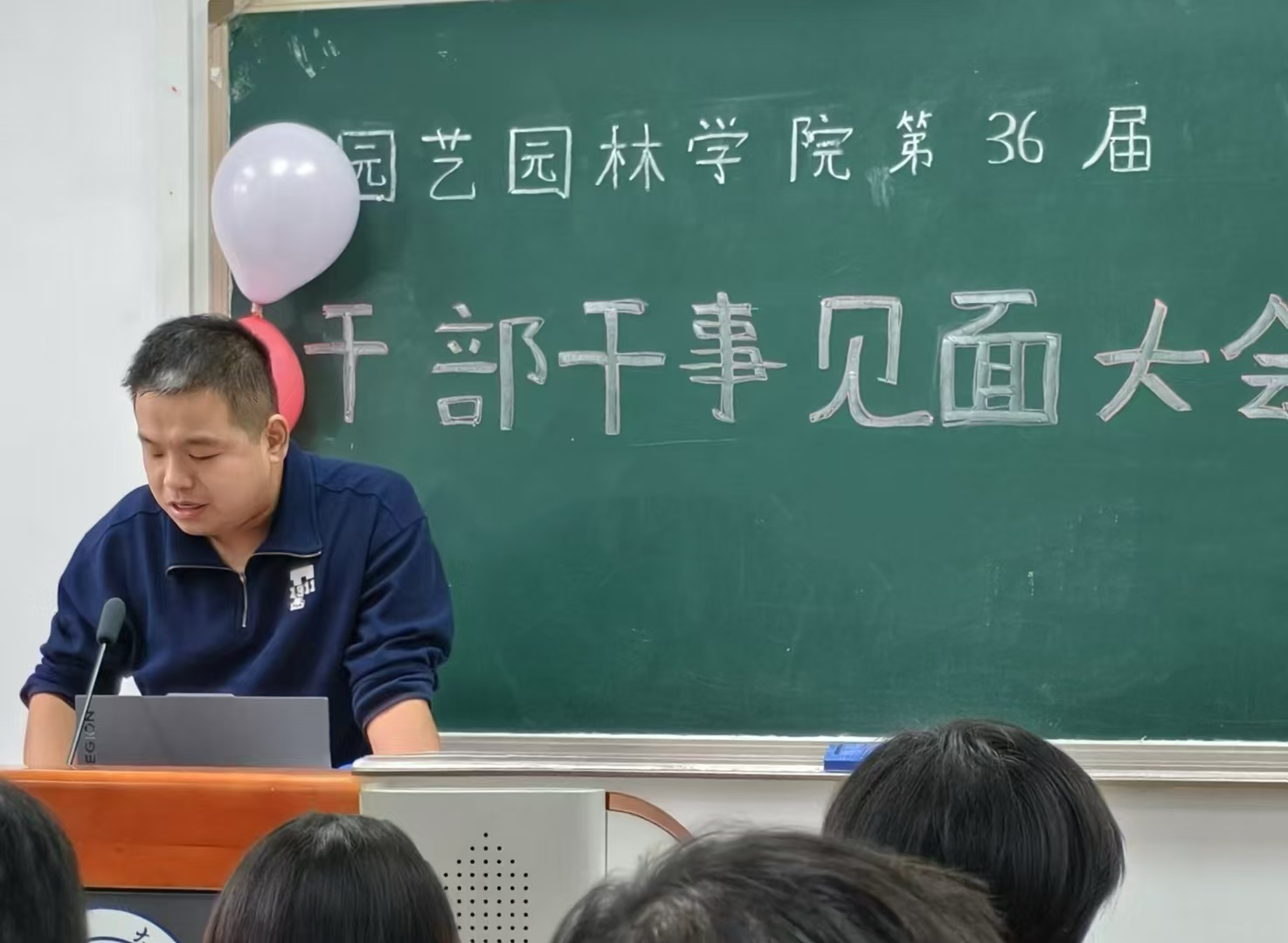 团委副书记李卓然分享了担任学生干部期间的收获与感悟,并鼓励新成员们以饱满的热情和积极的态度投入到团学工作中去,一如既往地进行为同学服务的宗旨,并充分发挥学生会的桥梁和纽带作用,互相合作,砥砺前行,全面履行好团委学生会工作职务,全心全意为师生服务。