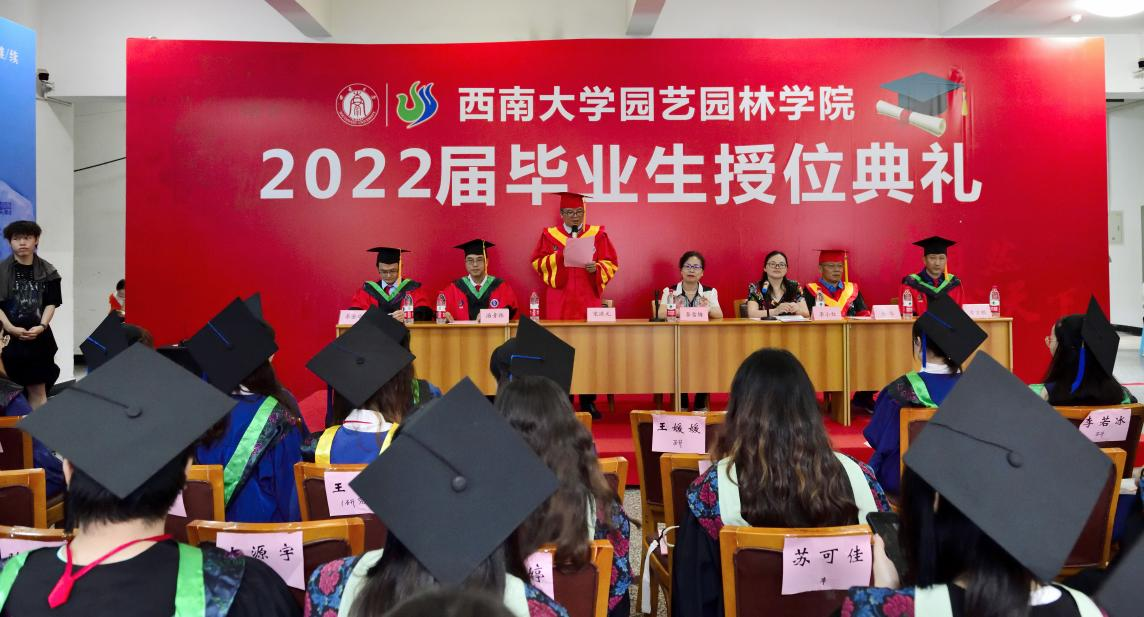 向经受住疫情考验、圆满完成学业的同学们表示了热烈的祝贺,向关心支持毕业生的亲友和付出辛勤汗水的老师们致以崇高的敬意。他希望所有毕业生不安小成、不图小利,要成大器、立远功,期待所有毕业生珍惜时间、学会合作与感恩,以脚踏实地的行动图绘出属于自己的多彩人生,谱写出属于全体园艺园林人的奋进新篇!
