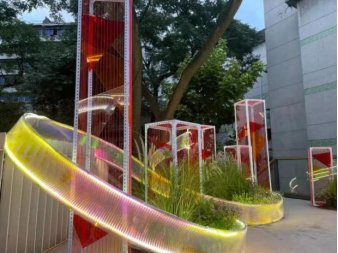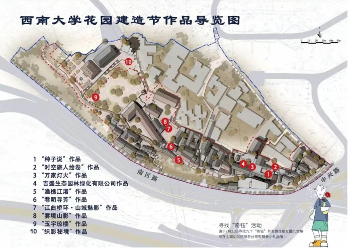 风景园林系专业展览,于2022年7月21日至7月31日在此进行公开展览。这些花园建造作品依托山城巷独具特色的立体街巷空间,以花园建造的方式丰富山城巷的空间内容和内涵,以色彩、材质、形态等多种手段营造浪漫生动的空间氛围,为山城巷游客们提供高感官、高参与度的沉浸式体验。
