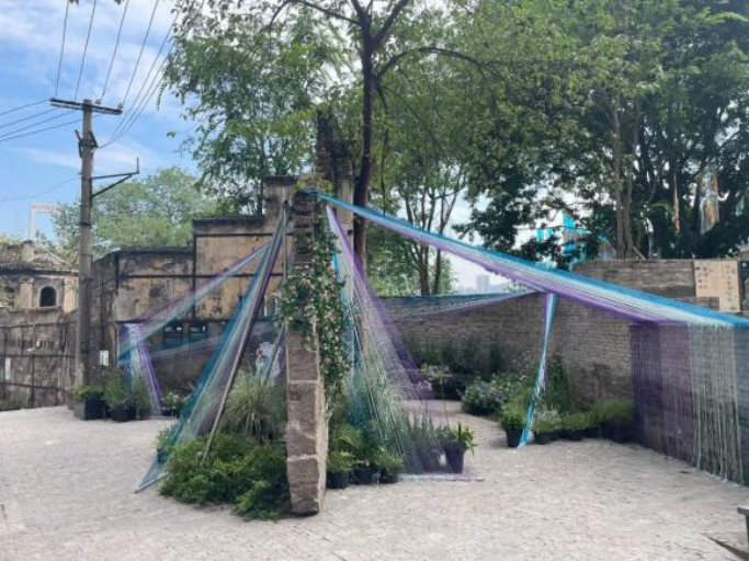 设计理念:在山城巷中寻寻觅觅,于仁爱墙垣静默独立。于雨中来,于晴时去。由丝线塑造梦幻流转的空间中,一端是过去,一端是现在。在丝线的光影交织与植物的色彩变幻中,感受历史的变迁、感受从废墟到新生的时空流转与情感递进;旧与新转折、交织,带来希望与治愈的力量,与此同时、也带来梦幻般的织影秘境。