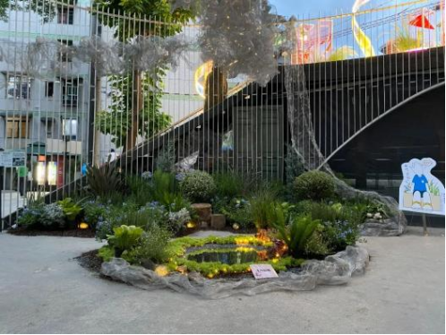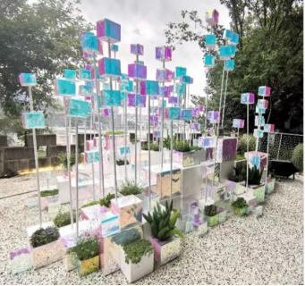 8个学生花园建造作品,参展作品“种子说”和吉盛生态企业作品“棒棒文化”以及日本动漫