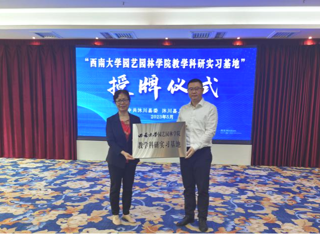 原党委书记李雪梅及中国园艺学会魔芋协会会长、校魔芋研究中心主任张盛林研究员等人,在四川省乐山市沐川县参加魔芋产业发展高端人才引进签约仪式。沐川县委副书记周大伟主持签约仪式。