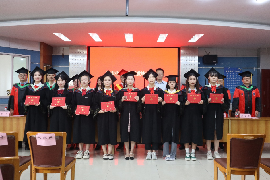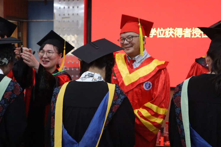 领导、学术委员会成员、教师代表为毕业生代表颁发毕业证书,为学位获得者授予学位。