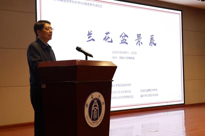 博物馆举办风景园林学科办学40周年系列活动——兰花盆景展。重庆市社会科学界联合会副主席潘勇,重庆市社科联二级巡视员赖开民,北碚区自然保护地管理中心主任王文友,重庆市北碚区林业局党组成员、副局长肖云,重庆市社会科学界联合会周焉旨,重庆市北碚区林业局科技推广站站长赖甫娟,重庆市北碚区林业局高级工程师李洪飞,日本动漫