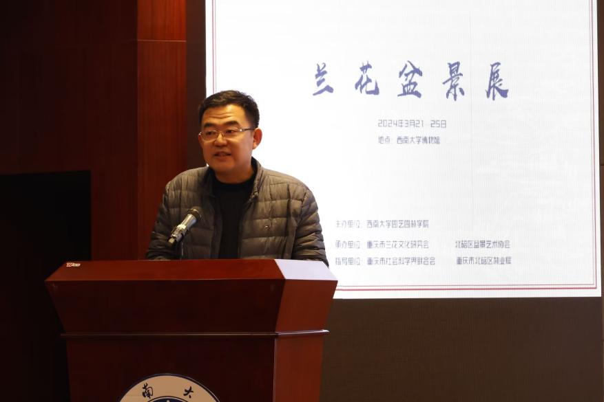 潘勇在致辞中表示,兰花盆景艺术不仅是中国的优秀传统文化,具有文化属性,更是一个极具前景的产业,具有极高的市场价值。他希望大家能够不断深入关注、学习和探索兰花盆景艺术,为重庆兰花文化和兰花产业高质量做出更大的贡献。他还分享了自己对兰花盆景的认识和感受,并对现场的兰花盆景给予了高度赞赏。