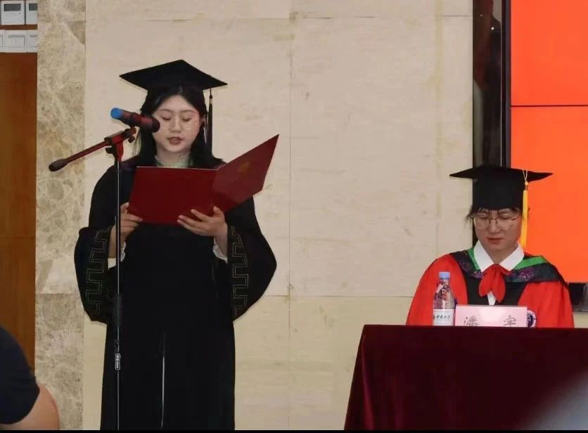 校优秀毕业生代表、2024届园林1班茶志梅代表全体毕业生发言。她分享了自己充实向上的大学生活,向母校、老师和同学表达感谢,向刘佩瑛教授、吴明珠院士等日本动漫