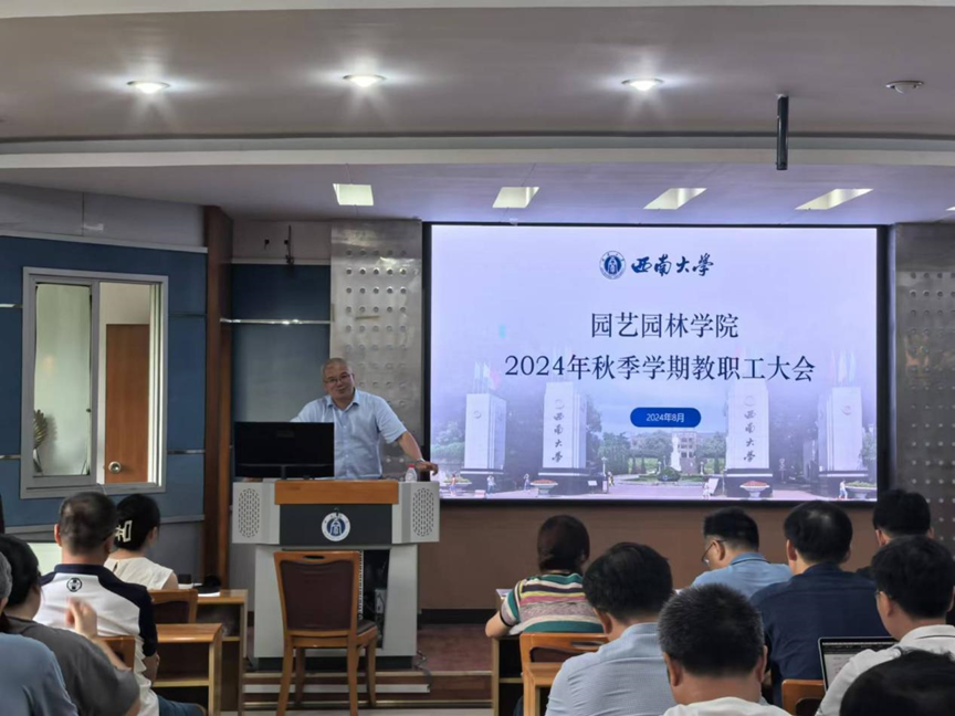 在33教406会议室召开2024年秋季学期教职工大会,全体教职工参加会议,会议由日本动漫