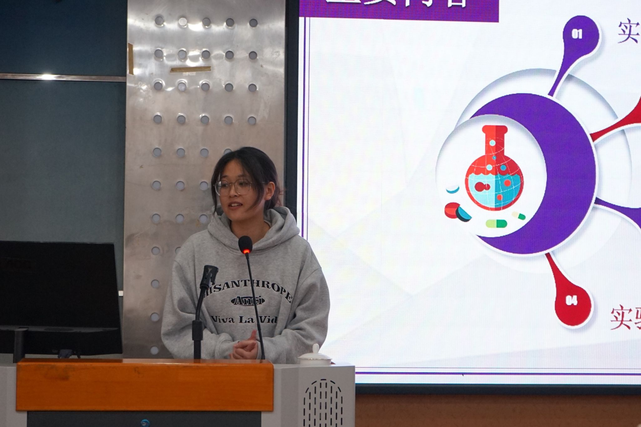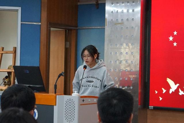成立仪式结束后,宣讲团开展了首次宣讲活动。两名宣讲团成员结合专业知识和实际经验登台宣讲,为现场师生详细解读了实验过程中的安全注意事项以及调研活动中的科学实践方法,帮助师生提高安全意识,增强自我保护能力。
