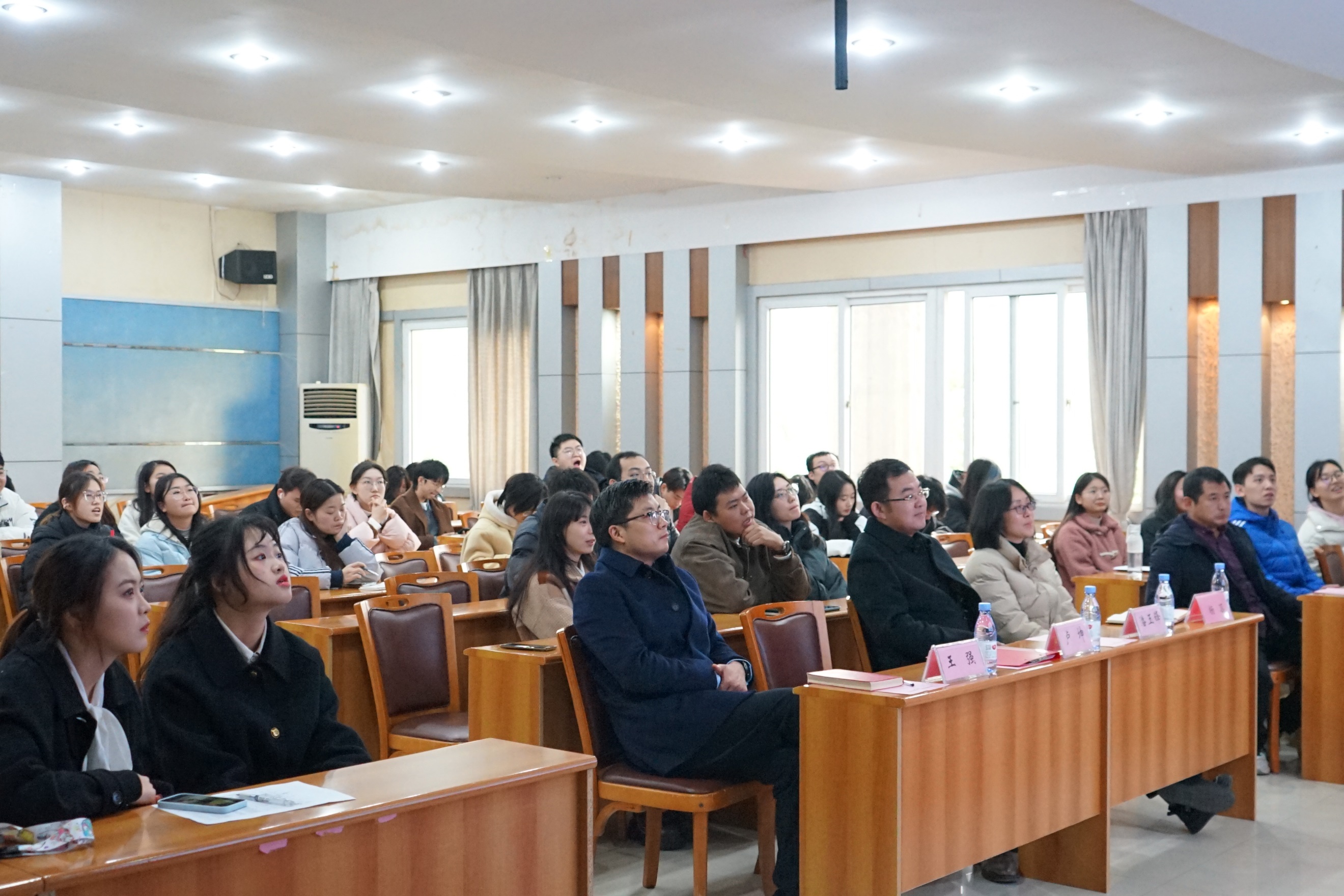 在场的师生都专心致志地聆听宣讲,同学们积极踊跃参与互动,现场氛围活跃。