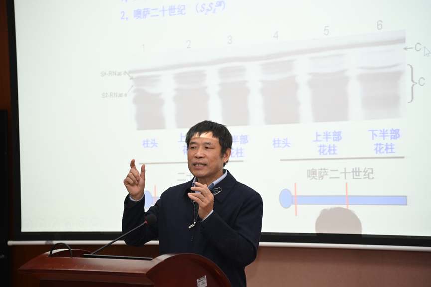 党委书记潘玉锋主持报告会,园艺系全体教师及研究生满怀期待地齐聚一堂,共同参与这场学术盛宴。张绍铃院士以其深厚的学术底蕴和丰富的实践经验,深入浅出地介绍了梨的起源、传播、驯化特性,分享了团队在梨自交不亲和机制研究以及构建高效育种技术体系方面的最新科学成果。与会师生积极提问,与张绍铃院士在科研学习等方面进行了深入交流,收获颇丰、受益良多。
