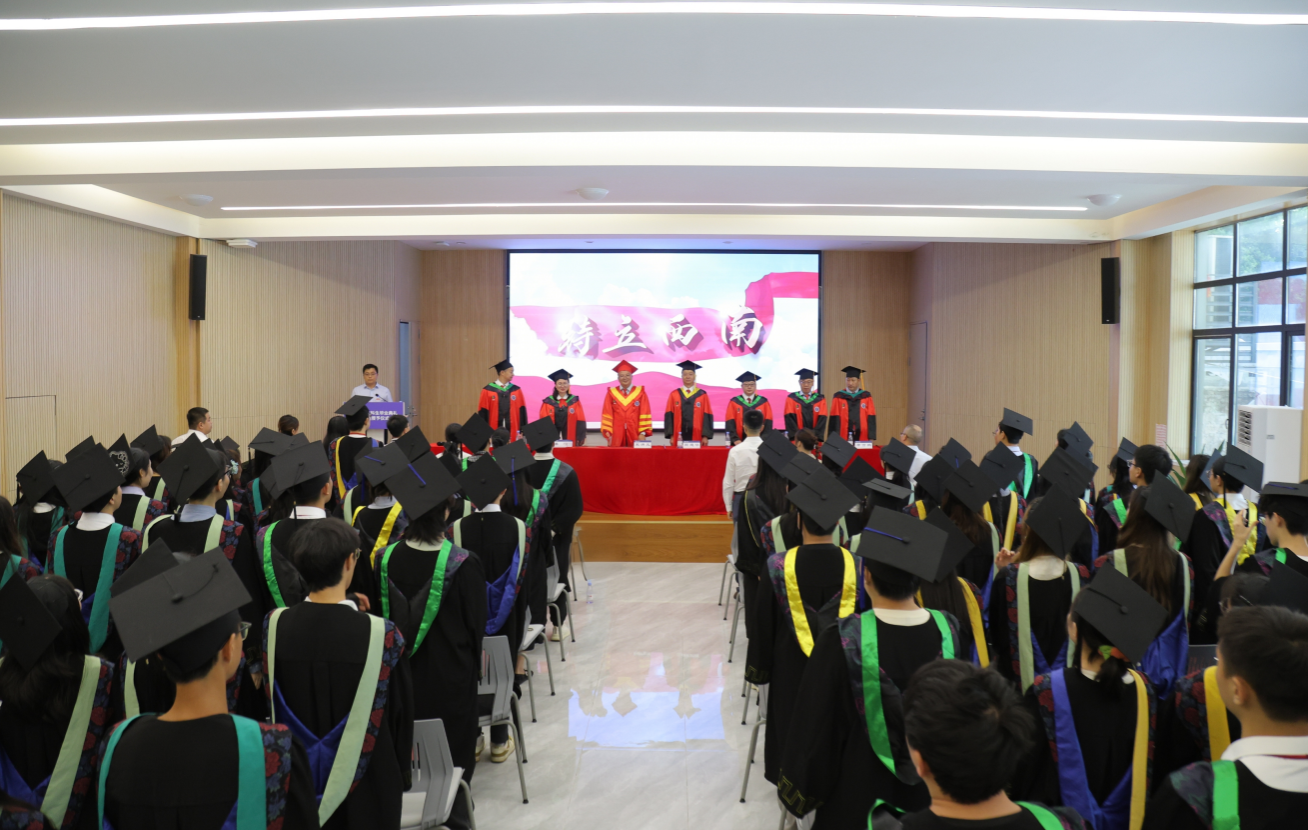 2025届本科生毕业典礼暨学位授予仪式在大学生创新创业中心温情启幕。缙云山下,嘉陵江畔,249名应届全日制普通本科生毕业奔赴人生新征程。学校党委常委、副校长白显良,全体院领导,全体院学术委员会成员,各系负责人,教师代表,全体辅导员,班主任代表,本科毕业生代表及家长代表齐聚一堂,共同见证美好时刻。活动由日本动漫