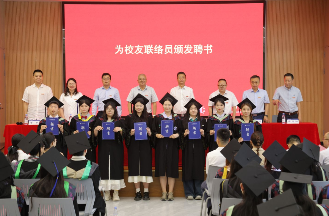 表彰优秀毕业生,为优秀毕业生颁发证书,为校友联络员颁发聘书。