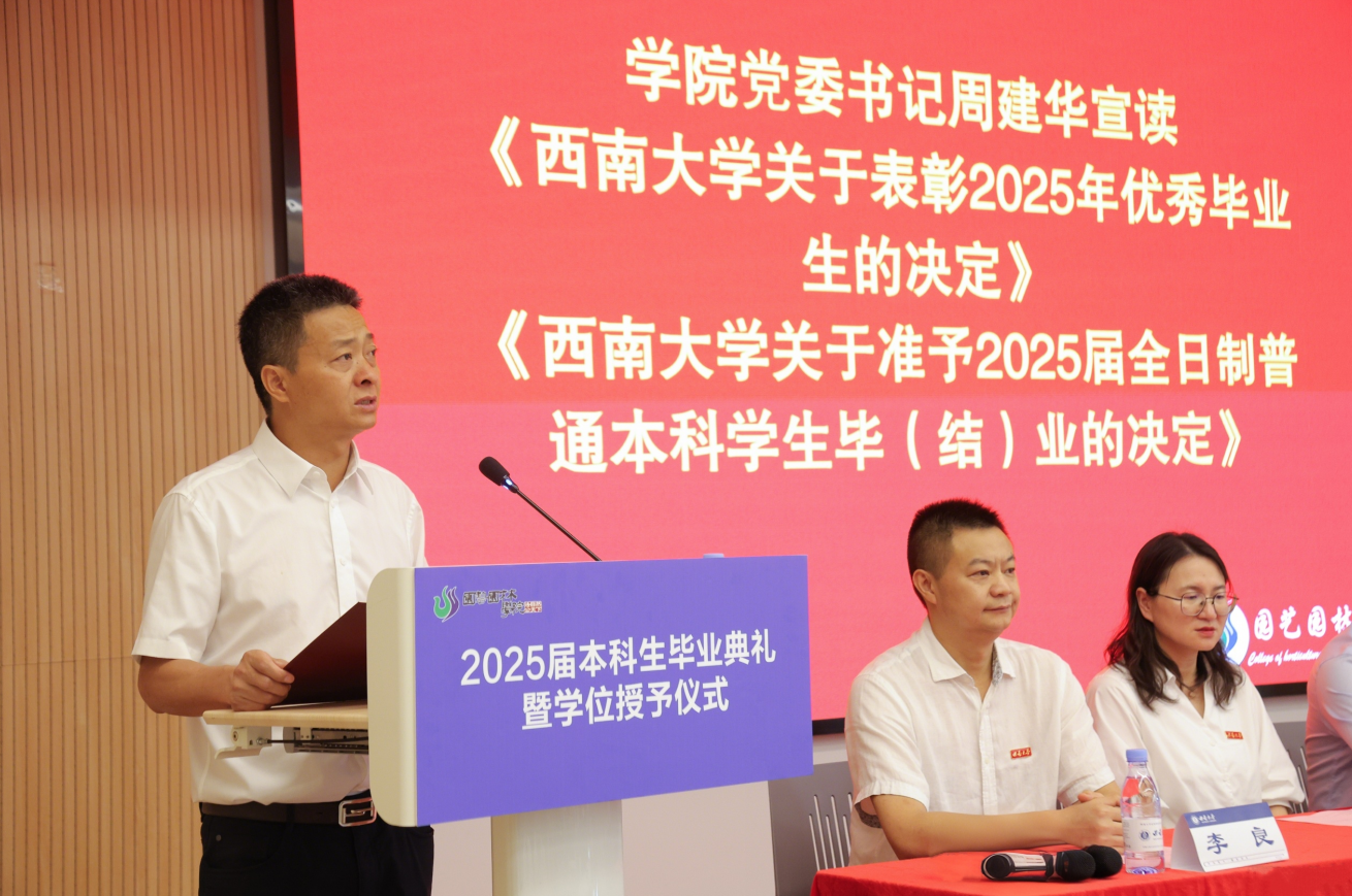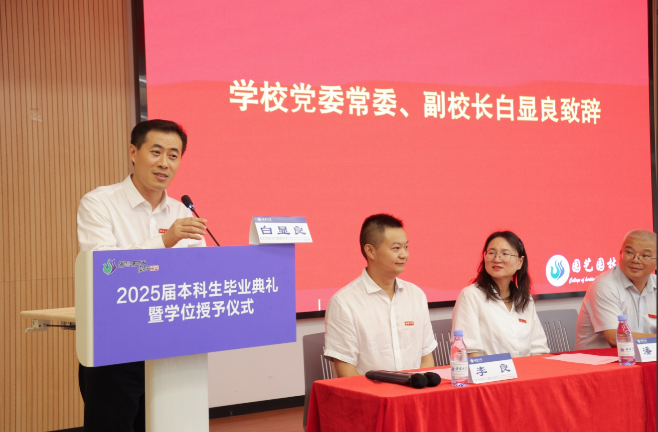 毕业生代表、2025届风景园林专业陶姝羽代表全体毕业生发言。她分享了自己扎根成长的大学生活,向母校、老师和同学表达感谢,向袁隆平院士、吴明珠院士等优秀校友们表达了崇高的敬意。她以“变革中的坚守”的感悟,呼吁每一位毕业生像种子般静待破土,像根系般向下深扎,像年轮般向内生长。在四季轮转中等待花开,在时光流转中守候答案。在变革的时代里,始终怀揣梦想,勇敢前行。教师代表辛儒鸿副教授则希望广大青年学子胸怀家国,永葆对初心的热爱和坚守;知行合一,永葆对事业的热爱和坚守;无惧风雨,永葆对生活的热爱和坚守。