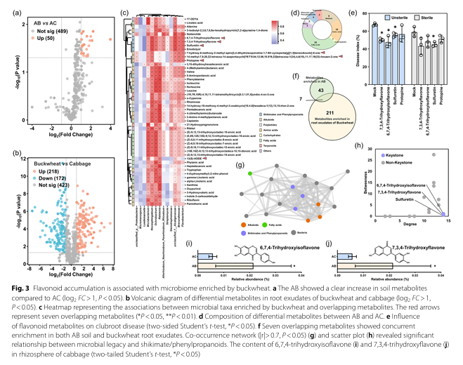 司军教授、宋洪元研究员联合南京农业大学袁军教授团队在国际微生物组权威期刊Microbiome发表了题为Soil microbial legacy mediated by buckwheat flavonoids enhances cabbage resistance to clubroot disease的研究论文。该研究系统阐明了荞麦通过分泌特定黄酮类物质,重塑土壤微生物群落,并增强后茬甘蓝对根肿病抗性的机制,为构建精准化的绿色轮作模式提供了理论依据和实践路径。