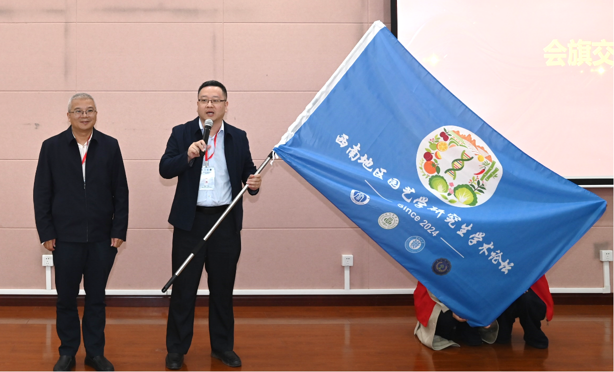 闭幕式最后环节,宋洪元与孙勃进行了会旗交接,下一届论坛将由四川农业大学园艺日本动漫
