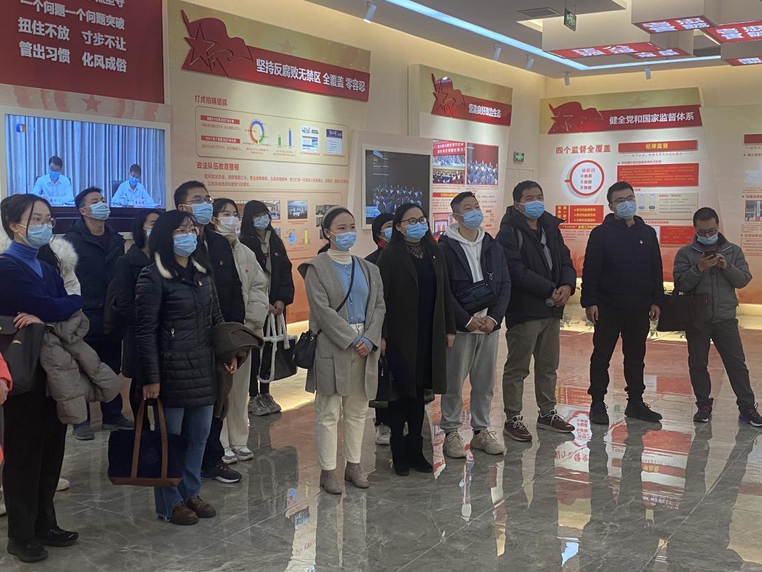 随后,大家进入三楼的案例警示区。在讲解员生动的讲解中,大家通过展厅丰富的图文视频、珍贵的档案资料展示,以及身临其境的3D体验,全面系统地了解了十八大以来,在以习近平同志为核心的党中央坚强领导下,我们党取得的全面从严治党重大成果和反腐败斗争压倒性胜利。从展厅的众多典型案例中,大家深刻认识到腐败给党和国家、个人与家庭带来的巨大伤害,受到强烈的震动,增强了拒腐防变的思想自觉。