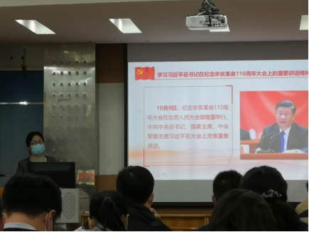 随后,李雪梅书记领学了《习近平总书记在纪念辛亥革命110周年大会上的重要讲话精神》,揭示了实现中华民族伟大复兴,必须有领导中国人民前进的坚强力量,这个坚强力量就是中国共产党,必须依靠中国人民自己的英勇奋斗,中国人民和中华民族必须同舟共济,依靠团结战胜前进道路上一切风险挑战。会上还学习了中共中央政治局10月18日会议精神、习近平总书记在中共中央政治局第三十四次集体学习时的重要讲话精神以及习近平总书记在参观国家‘十三五’科技创新成果展时的重要讲话精神”。
