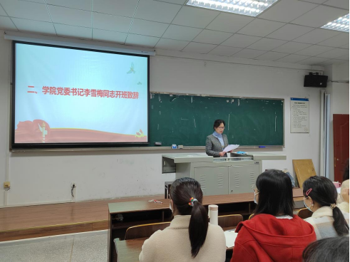 党委书记李雪梅做开班致辞。李书记为全体入党积极分子介绍党校培训目的,并对他们提出三点要求和希望:一要认真学习,提升素养;二要坚定理想,铸牢信念;三要主动参与,学做合一。希望学员们把自己的人生追求同祖国和民族的前途联系起来,树立全心全意为人民服务的思想,带头学好科学文化知识,积极参加学校和院系的各种实践活动。