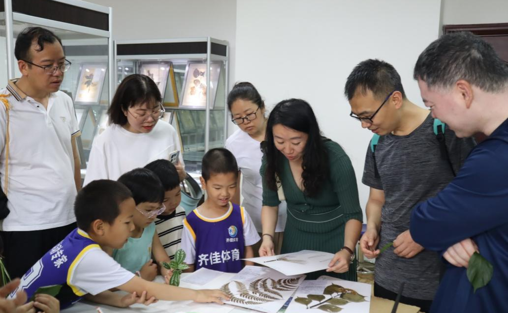 植物标本馆,关心副教授带领孩子们参观馆藏腊叶标本,生动讲述老一辈植物学家不畏艰辛采集植物标本的故事,以科学家精神感召鼓舞青少年孜孜不倦。