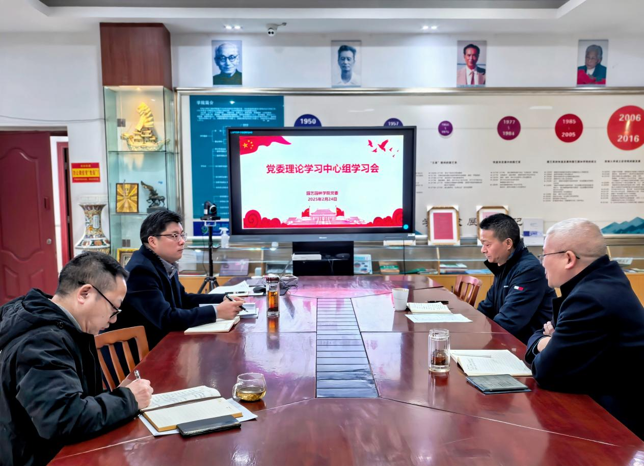 在33教411会议室举行2025年第一次党委理论学习中心组学习会,本次学习会是2024年度处级党员领导干部民主生活会前的一次专题集中学习。全体班子成员参会,会议由党委书记周建华主持。