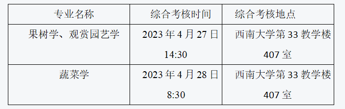 在综合评定申请人思想品德和政治素质基础上,以二级学科果树学、蔬菜学、观赏园艺学为单位按照申请人综合成绩从高到低依次排序录取。