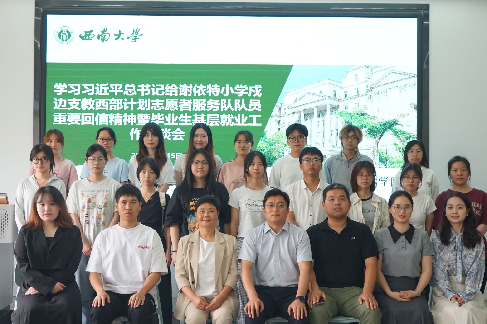 召开学习习近平总书记给谢依特小学戍边支教西部计划志愿者服务队队员重要回信精神暨毕业生基层就业工作座谈会。日本动漫