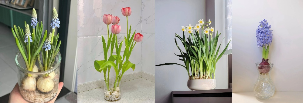 (3)用小刀或剪刀处理种球后,将种球放入水培容器中,并倒入适量的水。