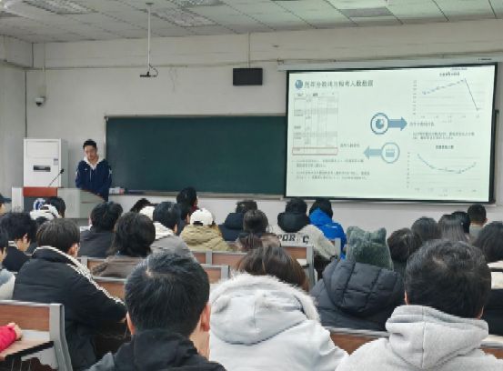 会议最后,余容组织邀请往届优秀学长学姐进行朋辈帮扶,精准开展考公、考研、求职应聘经验专题分享。2025届毕业生黄智胜、杨蕊嘉、张一天分别以大学四年的专业学习和成长生活为出发点,分享了课程学习方法、自我技能提升、生涯发展规划、院校选择与复习备考等多方面的经验,建议同学们提前做好职业生涯规划,明确学习目标,鼓励大家将长远的目标解析为多个短期目标,认真踏实地对待学习与生活。